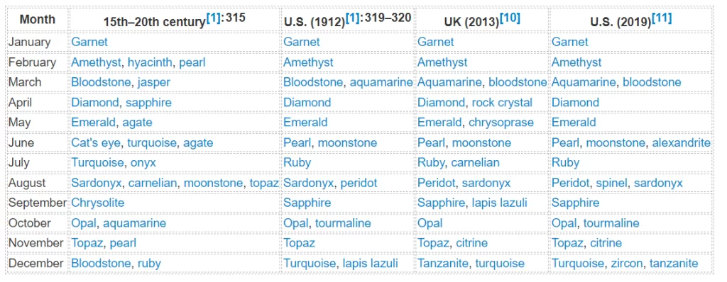 The Birthstone List We Know Today (20th & 21st Centuries AD)